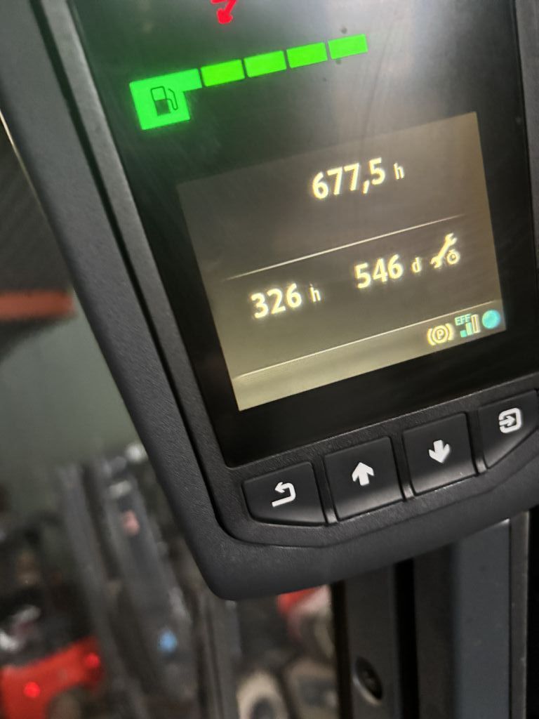 Mast: Triplex Hubhöhe: 6885 mm Bauhöhe: 2950 mm Freihub: 1500 mm |
