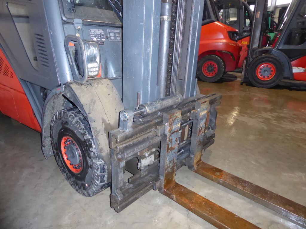 Mast: Triplex Hubhöhe: 5960 mm Bauhöhe: 2800 mm Freihub: 1500 mm Gabellänge: 1200 mm |