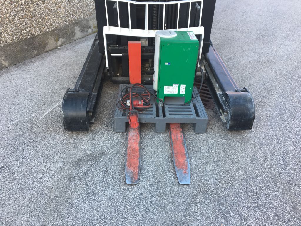 Mast: Triplex Hubhöhe: 7150 mm Bauhöhe: 3080 mm Freihub: 2442 mm Gabellänge: 1200 mm |